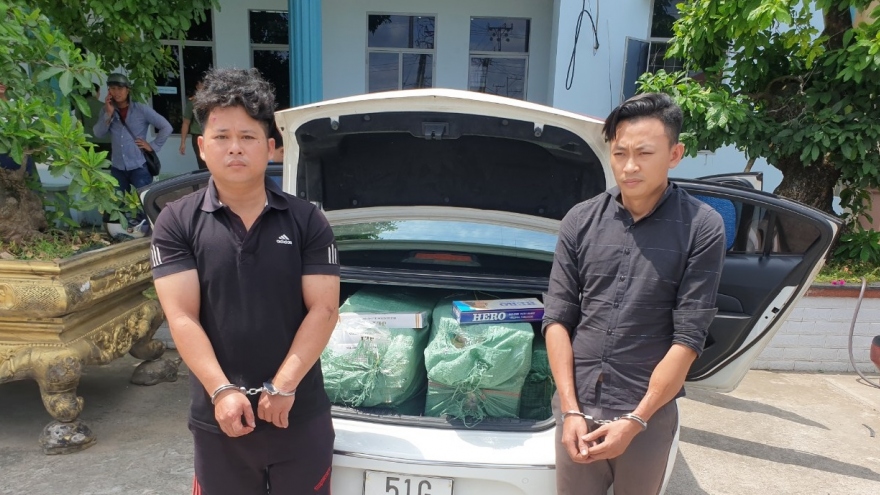 VOV.VN - Khi bị dừng xe kiểm tra, 2 đối tượng đã tăng ga bỏ chạy. Các lực lượng chức năng đã chốt chặn, dùng biện pháp nghiệp vụ truy cản buộc 2 đối tượng phải xuống xe.