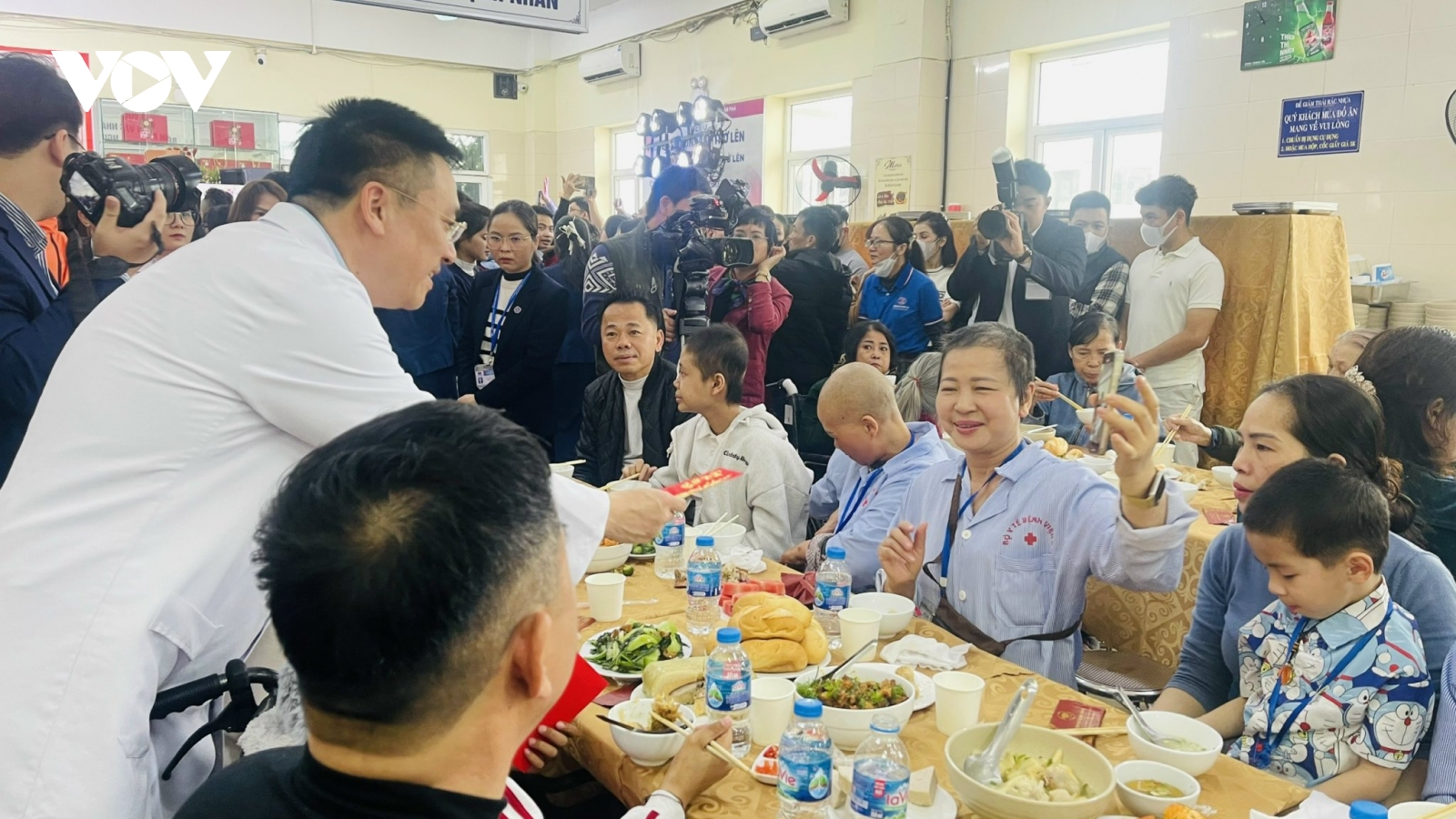 VOV.VN - Trưa 12/2 tại Hà Nội, Bệnh viện K phối hợp các nhà hảo tâm tổ chức bữa cơm tất niên cho hơn 1.200 người bệnh và thân nhân. Hoạt động thường niên suốt 10 năm qua góp phần sẻ chia khó khăn, lan tỏa hy vọng tới bệnh nhân ung thư dịp Xuân mới.