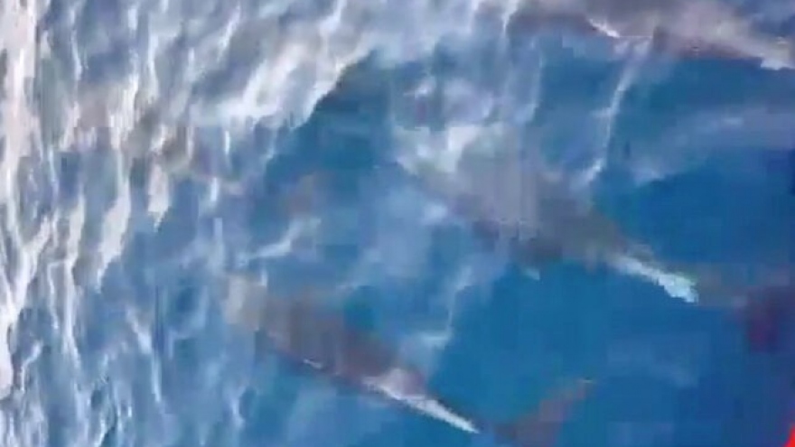 VOV.VN - Hình ảnh đàn cá heo hơn 100 con tung tăng bơi lội ở vùng biển gần danh thắng Mũi Điện (thị xã Đông Hòa, tỉnh Phú Yên) được người dân vừa ghi lại.