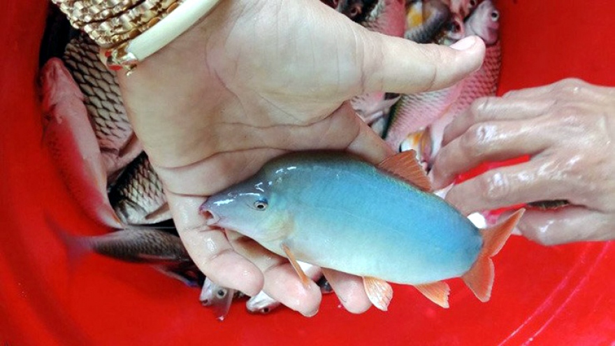 VOV.VN - Loại cá heo nước ngọt da nhẵn bóng, đuôi đỏ, có tiếng kêu éc éc như lợn có giá bán lên đến 750.000 đồng/kg, mang thu nhập cả trăm triệu đồng/năm cho người nuôi.