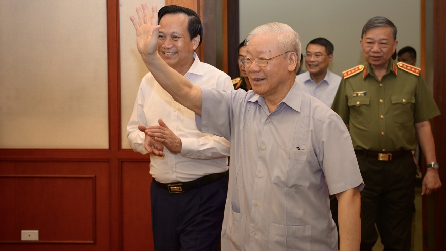 VOV.VN - Kỉ niệm 75 năm Ngày Thương binh - Liệt sĩ (27/7/1947 - 27/7/2022), chiều nay (23/7) tại Trụ sở Trung ương Đảng, Tổng Bí thư Nguyễn Phú Trọng đã có buổi gặp mặt 75 đại biểu Người có công tiêu biểu trong cả nước.