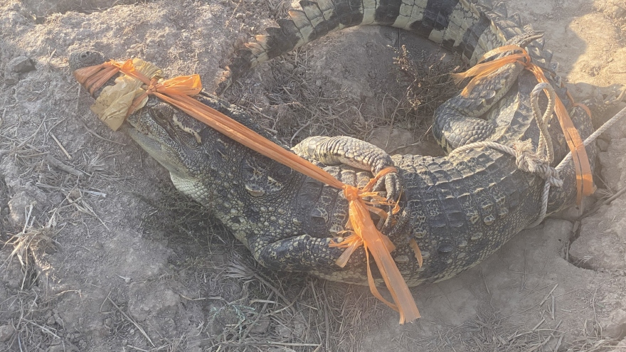 VOV.VN - Tối 29/8, ông Huỳnh Văn Tèo- Chủ tịch UBND thị trấn Phước Long, huyện Phước Long, tỉnh Bạc Liêu thông tin, địa phương đã vây bắt được con cá sấu mà trước đó người phát hiện nổi trên kênh Quản Lộ- Phụng Hiệp đoạn qua địa bàn thị trấn.