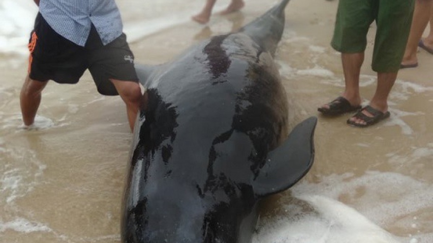 VOV.VN -Sáng 28/11, một số ngư dân khu vực thôn Khe Hai, xã Bình Thạnh, huyện Bình Sơn, tỉnh Quảng Ngãi phát hiện con cá voi (cá Ông) trôi dạt vào bờ biển
