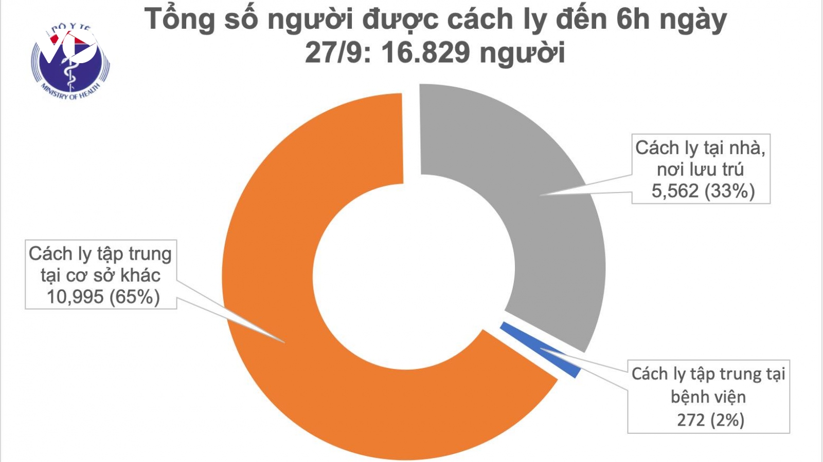 VOV.VN - Theo Bộ Y tế, đến 6 sáng 27/9, Việt Nam ghi nhận không có ca mắc Covid-19 mới. Đến thời điểm này, tổng số ca mắc tại nước ta vẫn là 1.069 ca, trong đó có 691 ca do lây nhiễm trong nước.
