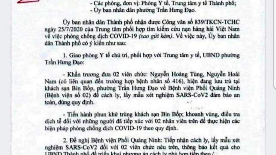 VOV.VN - TP Hải Phòng vừa cách ly, lấy mẫu xét nghiệm 1 trường hợp có liên quan đến bệnh nhân Covid-19 số 416 tại Đà Nẵng, đồng thời yêu cầu cách ly tại nhà.