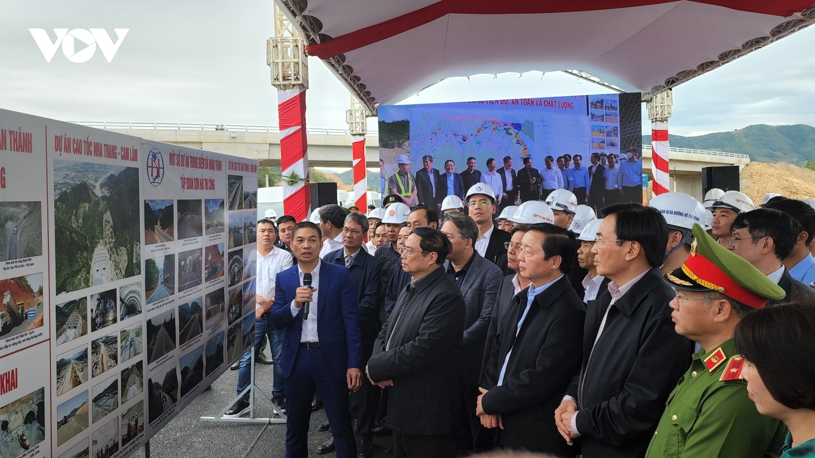 VOV.VN - Chiều 26/1 (mùng 5 Tết), Thủ tướng Phạm Minh Chính kiểm tra, đôn đốc dự án Nha Trang - Cam Lâm thuộc dự án cao tốc Bắc - Nam phía Đông giai đoạn 1, thăm, chúc Tết cán bộ, công nhân viên tham gia dự án.