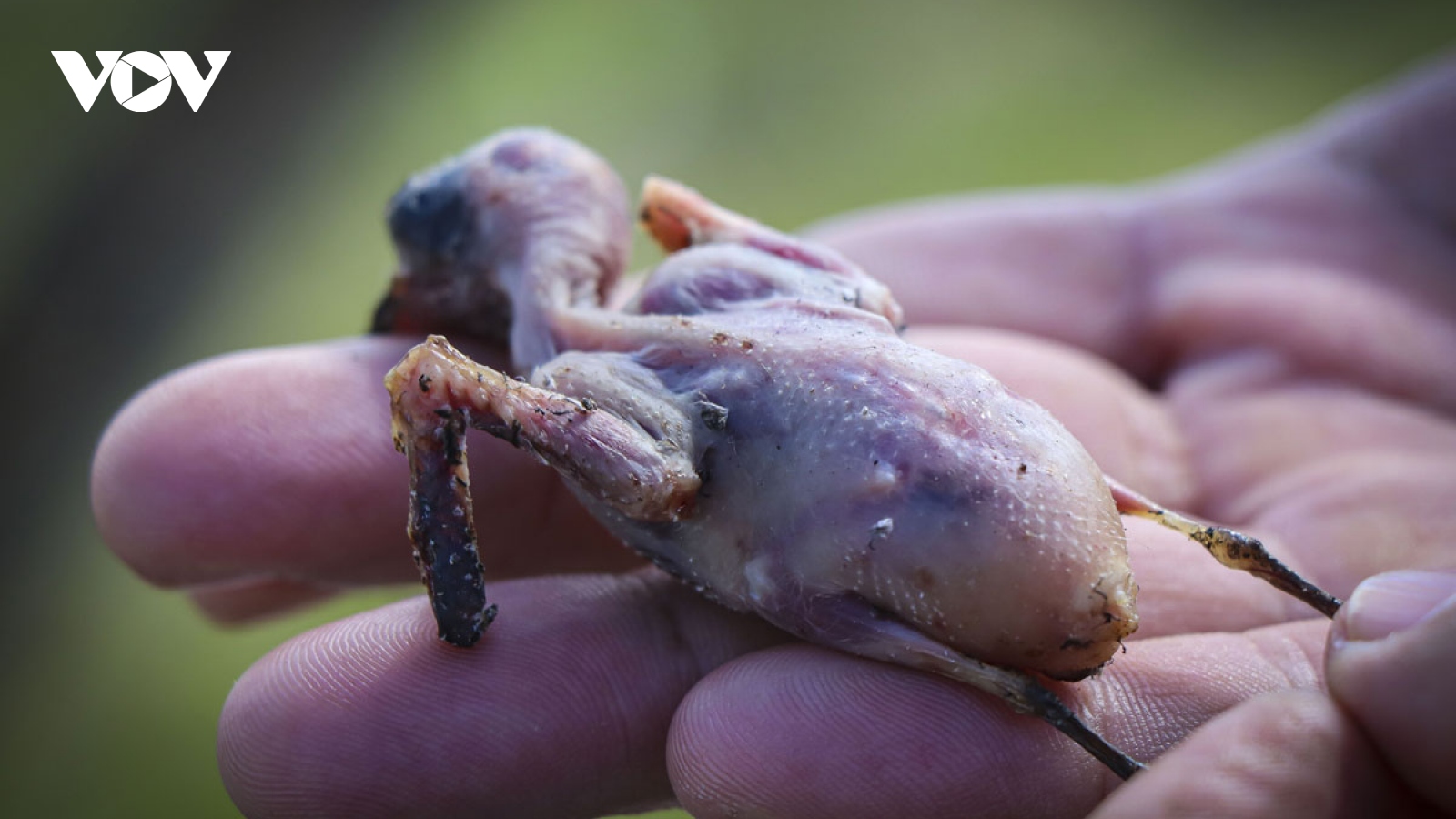 VOV.VN - Sử dụng chim mồi gắn trên các tay tre bôi đầy chất dính, sau đó dùng loa phát tiếng kêu thu sẵn dụ dỗ, mỗi ngày một thợ săn chim có thể bẫy, mang về được hàng trăm con chim trời.