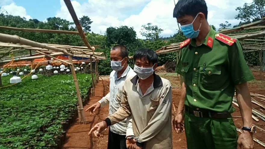 VOV.VN - Qua facebook, Vi Thị Phượng thấy giới thiệu cây dược liệu có thể phòng, chống dịch bệnh cho heo, gà nên mua giống về trồng. Hơn 200 cây cần sa được bà trồng trên rẫy.