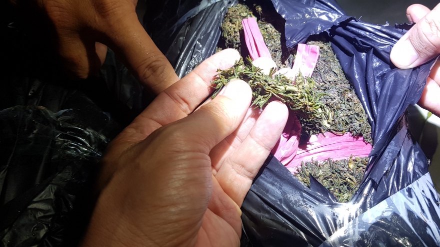 VOV.VN - Ngày 25/6, Bộ Chỉ huy Bộ đội Biên phòng tỉnh An Giang cho biết, vừa phát hiện và thu giữ 20 kg nghi là cần sa khô vận chuyển từ bên kia biên giới vào Việt Nam.
