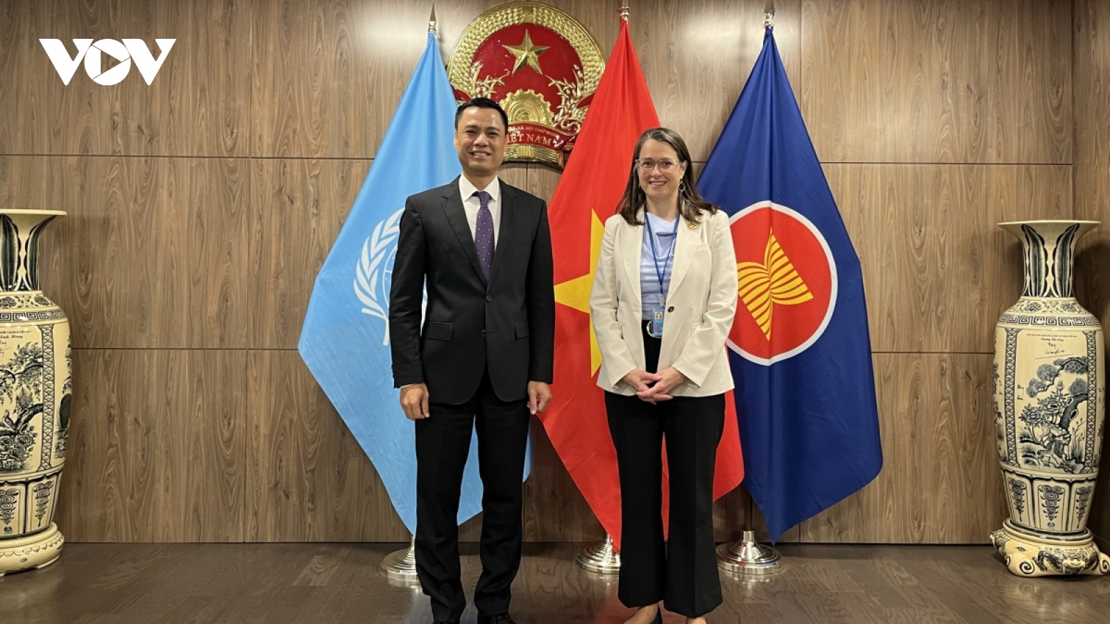 VOV.VN - Đại sứ, Trưởng Phái đoàn thường trực Việt Nam tại Liên hợp quốc Đặng Hoàng Giang ngày 14/06 đã tiếp bà Catherine Stewart, Đại sứ về biến đổi khí hậu của Canada.