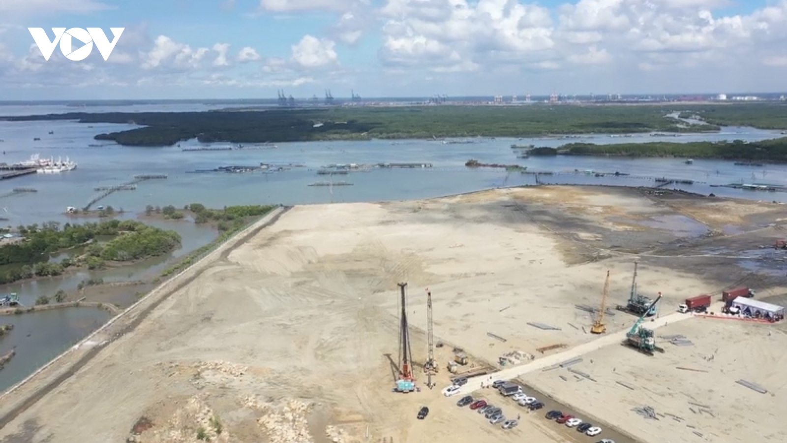 VOV.VN - Dự kiến quý I năm 2023, cảng container quốc tế rộng 33 ha ở Bà Rịa – Vũng Tàu sẽ đưa vào hoạt động giai đoạn 1 gồm: 2 bến cảng tổng hợp, container; 2 cầu cảng với tổng chiều dài 240m, có khả năng tiếp nhận tàu tổng hợp có trọng tải đến 20.000DWT (40.000 tấn).