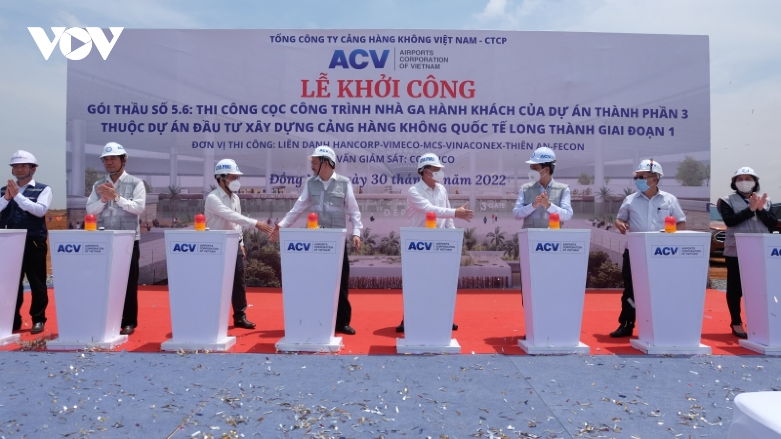 VOV.VN - Sáng 30/3, Tổng Công ty Cảng hàng không Việt Nam (ACV) tổ chức lễ khởi công gói thầu thi công cọc công trình nhà ga hành khách Cảng hàng không quốc tế Long Thành.