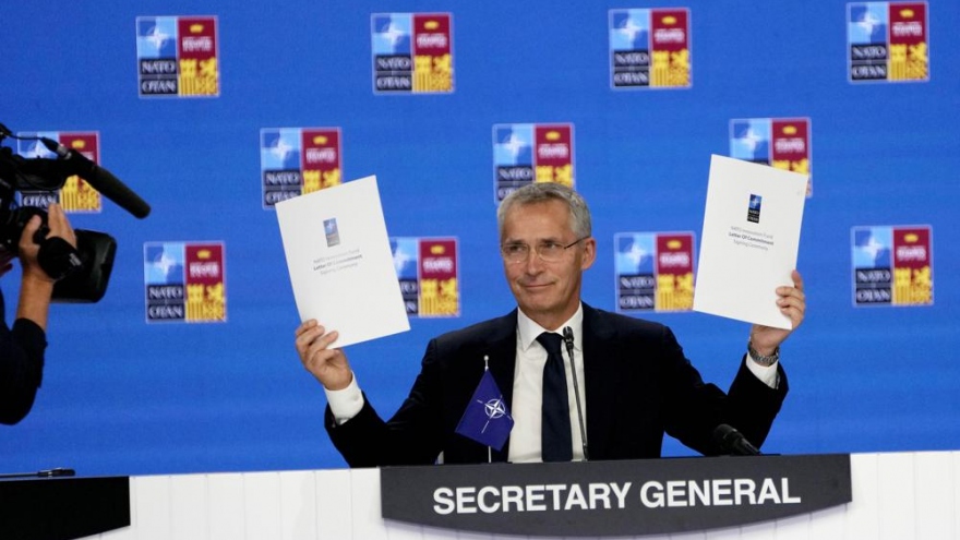 VOV.VN - Tại Hội nghị Thượng đỉnh NATO ở Madrid, Tây Ban Nha, các nhà lãnh đạo của liên minh quân sự này đã chính thức mời Phần Lan và Thụy Điển gia nhập khối sau khi đạt được thỏa thuận chấm dứt sự phản đối của Thổ Nhĩ Kỳ.