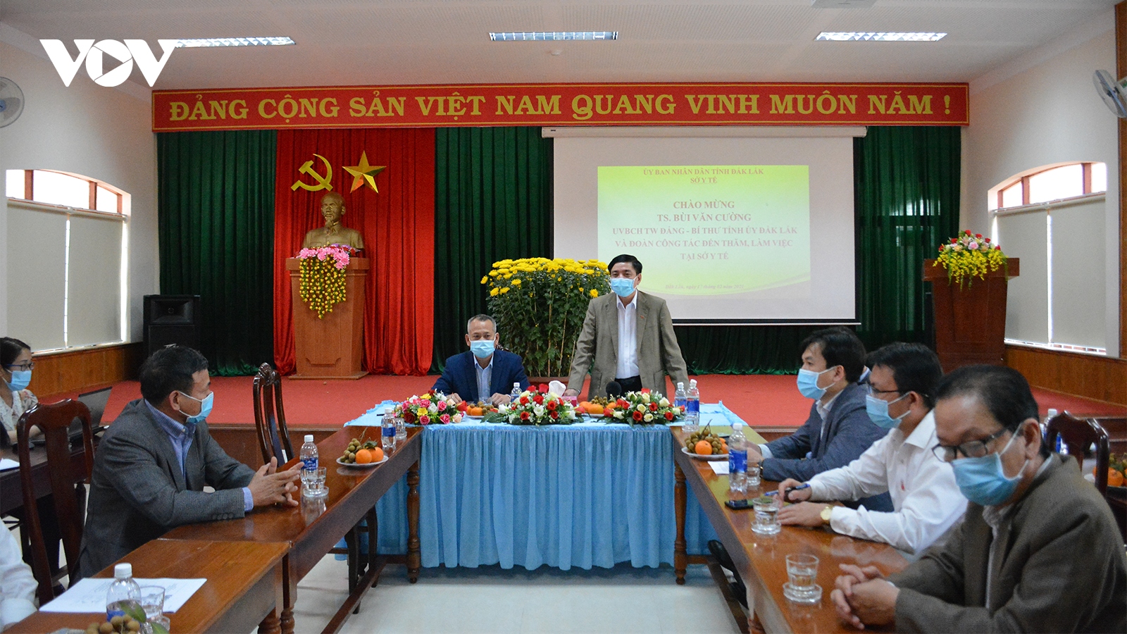 VOV.VN - Ngành y tế Đắk Lắk cần tiếp tục nâng cao tinh thần cảnh giác để kịp thời ngăn chặn, không để dịch Covid -19 xâm nhập vào địa bàn là chỉ đạo của ông Bùi Văn Cường, Ủy viên Trung ương Đảng, Bí thư Tỉnh ủy Đắk Lắk trong buổi làm việc với Sở y tế tỉnh Đắk Lắk vào chiều 17/2.