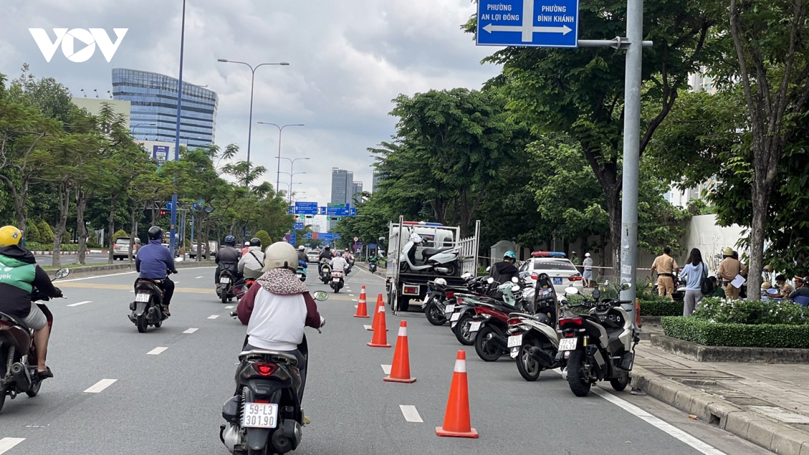 VOV.VN - Trước tình trạng xe khách sau khi xuất bến chạy với tốc độ rùa bò 2 bên đường Phạm Hùng để đón trả khách/đón trả hàng, gây nên ùn tắc giao thông vô cùng nhức nhối xung quanh khu vực bến xe Mỹ Đình, lực lượng thanh tra giao thông đã đưa ra nhiều biện pháp ngăn chặn, xử lý nhưng không hiệu quả.