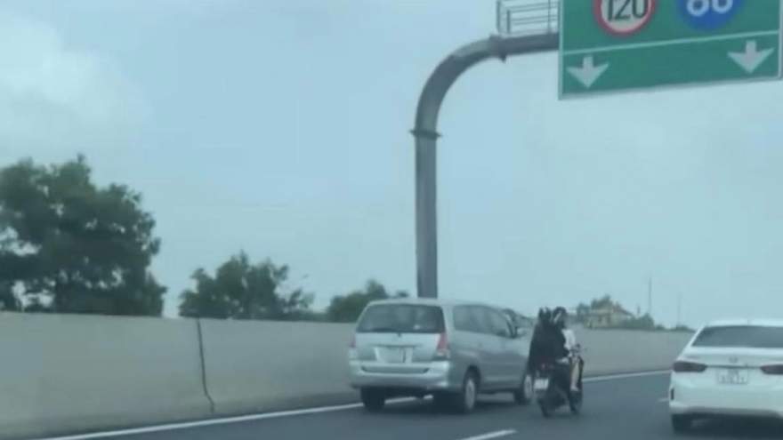 VOV.VN - Chiều 22/4 tại Km05, một xe máy (trên xe có 2 người) phi như tên bay ở làn 120km/h trên cao tốc Hà Nội - Hải Phòng gây ra nguy hiểm cho các phương tiện khác.