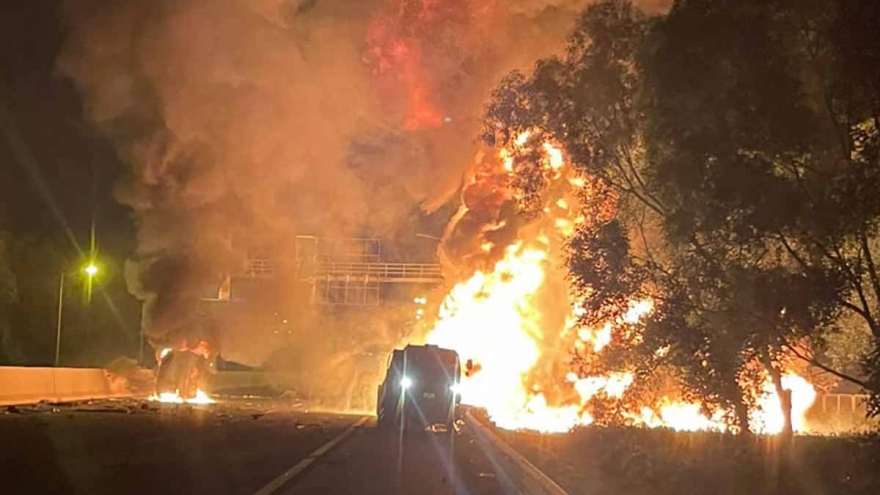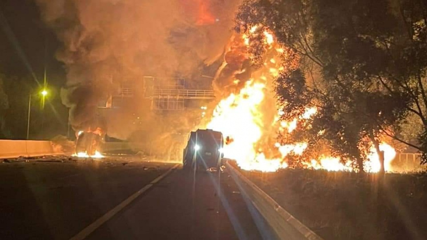 VOV.VN - Đội Cảnh sát giao thông số 2, Cục Cảnh sát giao thông đang phối hợp với các cơ quan khẩn trương xử lý vụ cháy phương tiện xảy ra trên tuyến cao tốc Hà Nội - Hải Phòng, đoạn qua địa phận huyện Gia Lộc, tỉnh Hải Dương.
