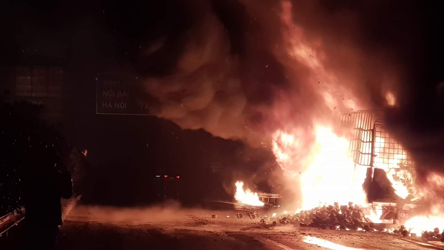 Vụ cháy xe Hà Sơn trên cao tốc Nội Bài – Lào Cai: Ngọn lửa bốc ra từ khoang máy