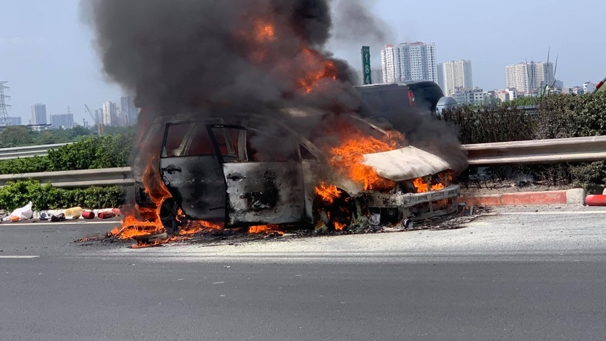 VOV.VN - Một ô tô 7 chỗ đang di chuyển trên cao tốc Pháp Vân - Cầu Giẽ - Ninh Bình bất ngờ bốc cháy ngùn ngụt, rất may những người trong xe kịp thoát nạn.