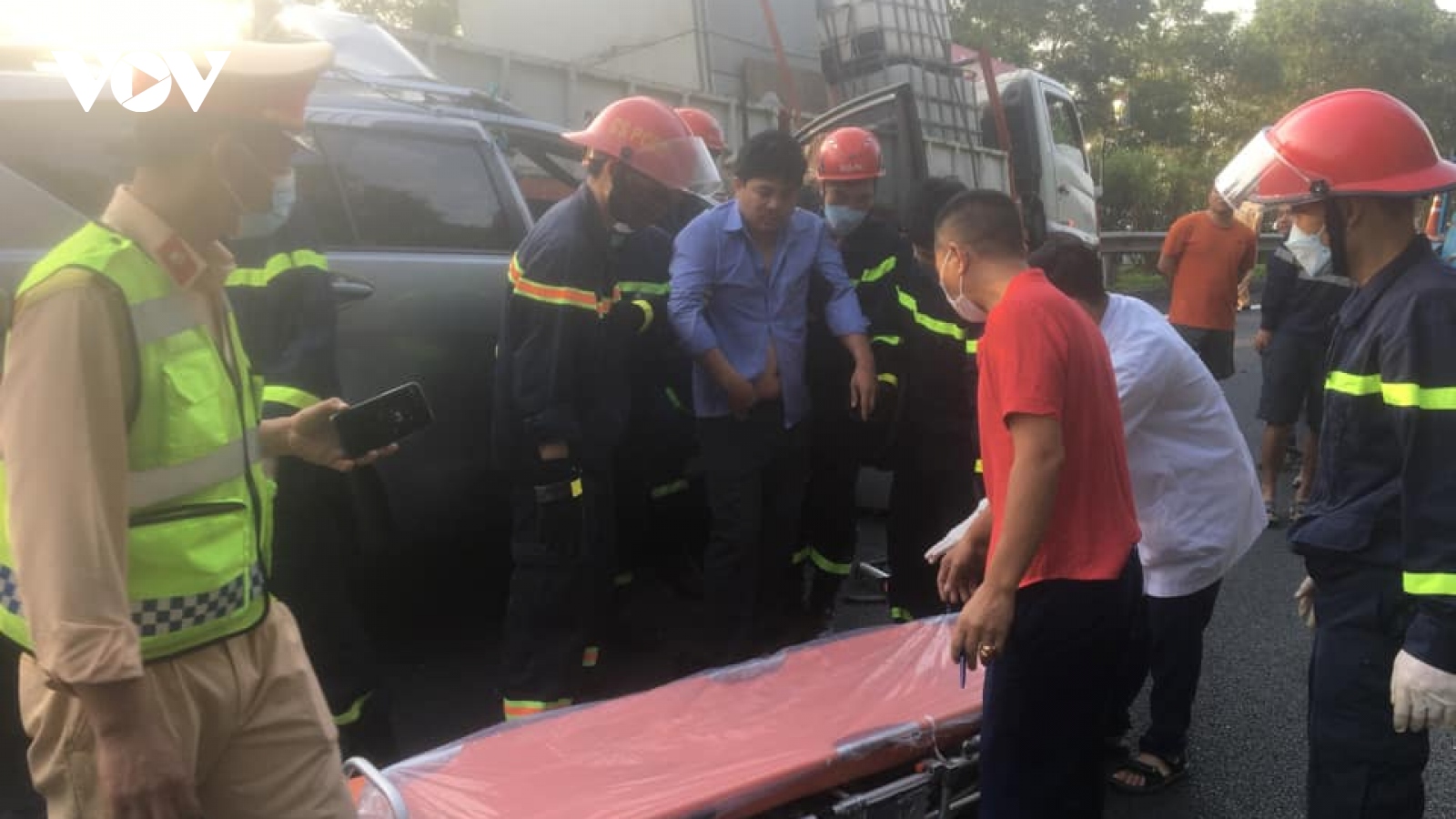 VOV.VN - Vụ va chạm trên cao tốc Pháp Vân-Cầu Giẽ lúc 6h30 sáng 3/5 khiến tài xế xe 7 chỗ mắc kẹt tại ghế lái, bị vô lăng và trần xe ép chặt gây thương tích khiến lực lượng chức năng phải dùng máy cắt thủy lực, xe nâng để đưa lái xe ra ngoài đưa đi cấp cứu.
