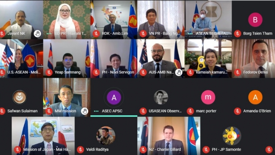 VOV.VN - Cuộc họp Đại sứ các nước thành viên Cấp cao Đông Á (EAS) các nước trao đổi ý kiến và đánh giá về tình hình quốc tế và khu vực như tình hình Myanmar, vấn đề phi hạt nhân hóa bán đảo Triều Tiên, và Biển Đông.