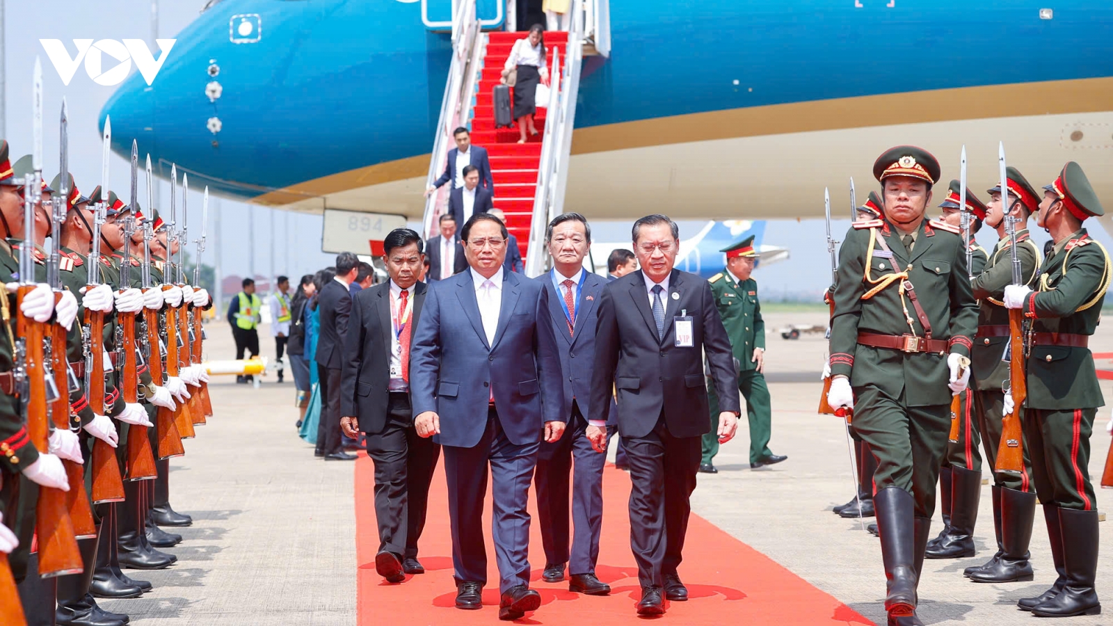 VOV.VN - Sáng ngày 9/10, Hội nghị Cấp cao ASEAN lần thứ 44, 45 và các Hội nghị liên quan đã khai mạc trọng thể tại Trung tâm Hội nghị Quốc gia của Lào, với sự tham dự của Lãnh đạo các nước ASEAN, Timor-Leste cùng nhiều đại diện đối tác, tổ chức quốc tế và khu vực. Thủ tướng Chính phủ Phạm Minh Chính dẫn đầu đoàn đại biểu cấp cao Việt Nam tham dự lễ khai mạc.