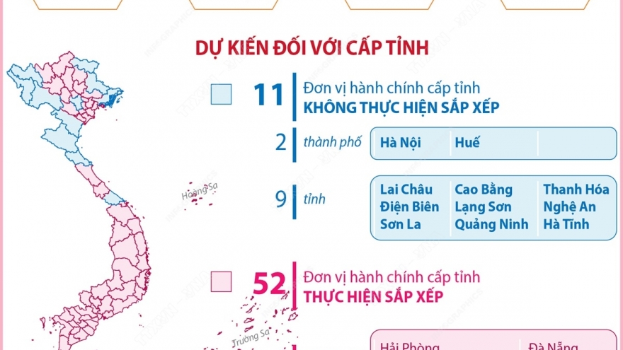 VOV.VN - Nước ta hiện có 57 tỉnh và 6 thành phố trực thuộc trung ương. Số lượng đơn vị cấp huyện thời gian qua có sự sắp xếp, sáp nhập, song vẫn còn 696 (giảm 9 đơn vị); số cấp xã là 10.035 (giảm 563 đơn vị).