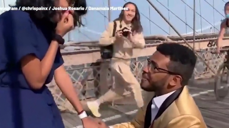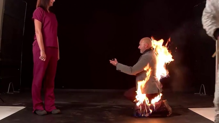 VOV.VN - Một nam diễn viên đóng thế đã thực hiện màn cầu hôn độc đáo nhưng nguy hiểm với vị hôn thê của mình bằng cách để lửa cháy trên quần áo của mình.