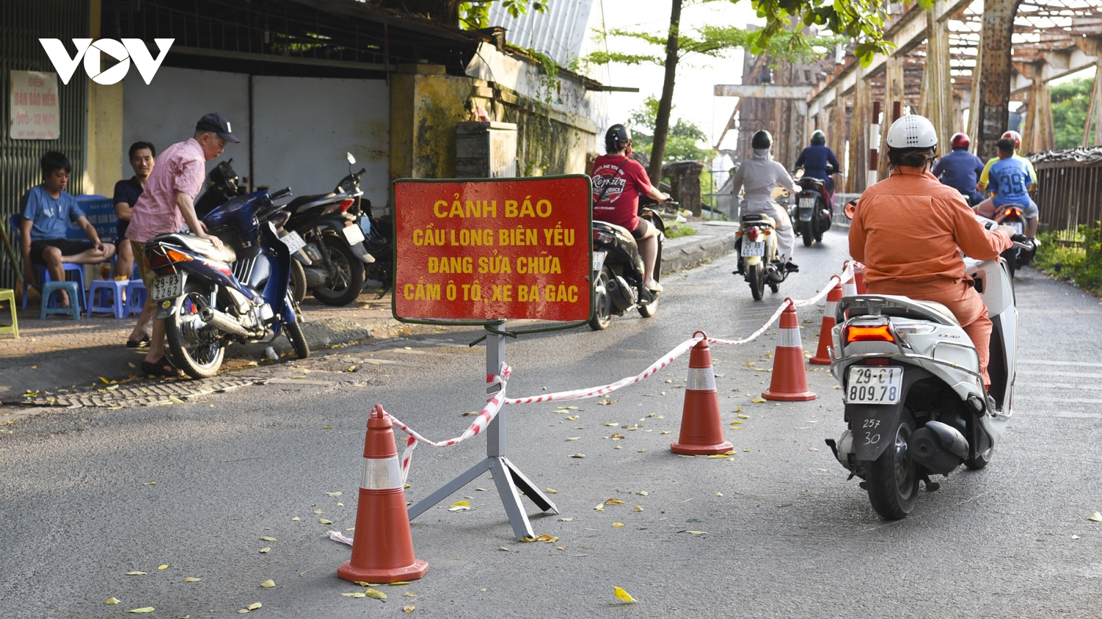 VOV.VN - Một xe ba gác di chuyển qua cầu Long Biên, đến đoạn qua bãi giữa do chở nặng, cổng kềnh đã gây ra lỗ thủng đường kính khoảng 60x80 cm trên mặt cầu.
