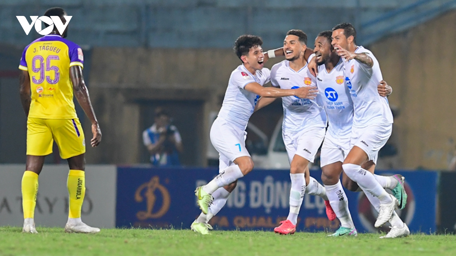 VOV.VN - Cầu thủ đắt giá nhất V-League 2023/2024 theo định giá của Transfermarkt, Joel Tagueu bỏ lỡ khó tin và nhận thẻ đỏ trong ngày Hà Nội FC thua Nam Định 1-2.
