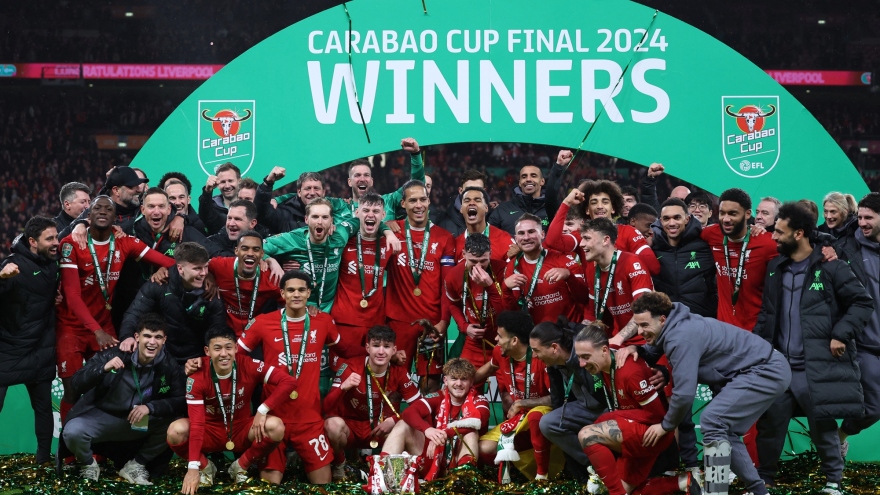 VOV.VN - Dù mất nguyên một đội hình vì chấn thương và sử dụng một loạt cầu thủ "lạ lẫm" nhưng Liverpool vẫn thắng Chelsea 1-0 để vô địch Cúp Liên đoàn Anh 2023/2024.