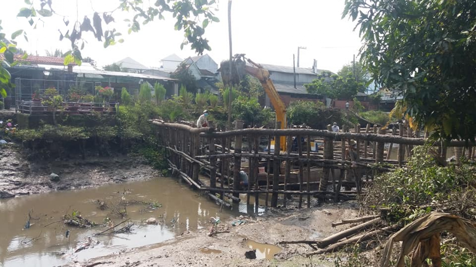 VOV.VN - Để ngăn mặn, trữ ngọt phục vụ cho khoảng 1.000 ha vườn cây ăn quả, huyện Cái Bè, tỉnh Tiền Giang đang triển khai xây dựng các cống đập và nạo vét kênh chứa nước ngọt có quy mô lớn.