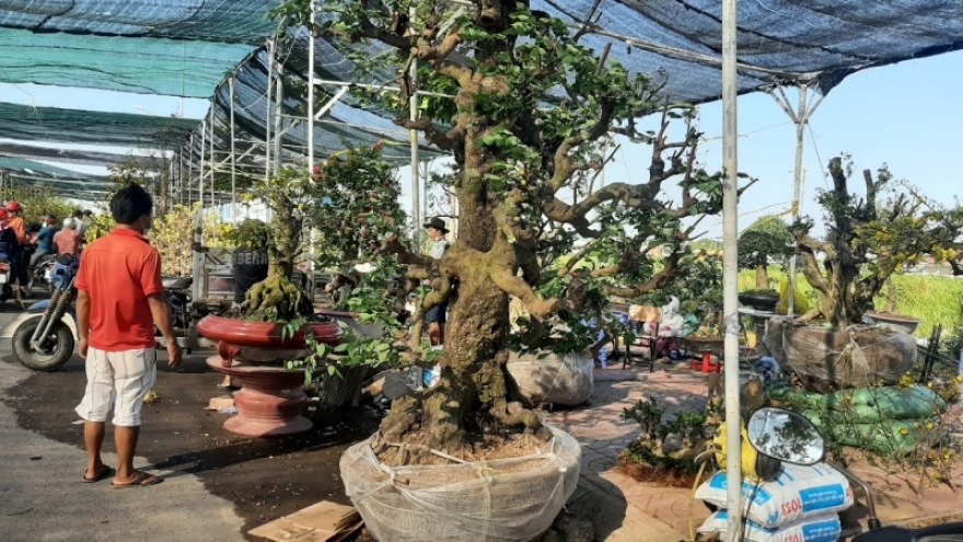 VOV.VN - So với năm trước, giá các loại hoa cây cảnh năm nay giảm từ 10- 15% để phù hợp với túi tiền của người dân sau 1 năm dịch bệnh, nhiều nhà vườn tổ chức bán hàng online tạo thuận lợi cho khách.