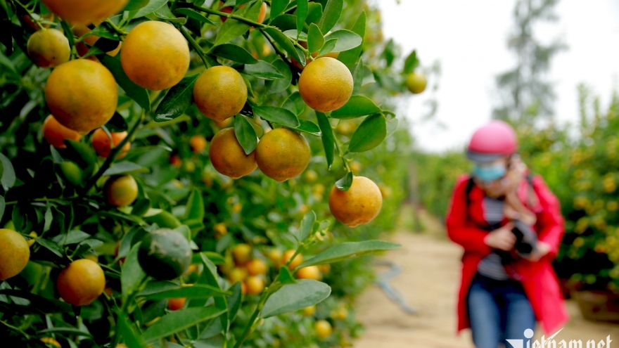 VOV.VN - Những cây đào, quất, bưởi có giá vài chục đến cả trăm triệu đồng đã được trưng bày nhiều trên phố Hà Nội, chuẩn bị phục vụ người dân sắm Tết Nguyên đán Quý Mão 2023.