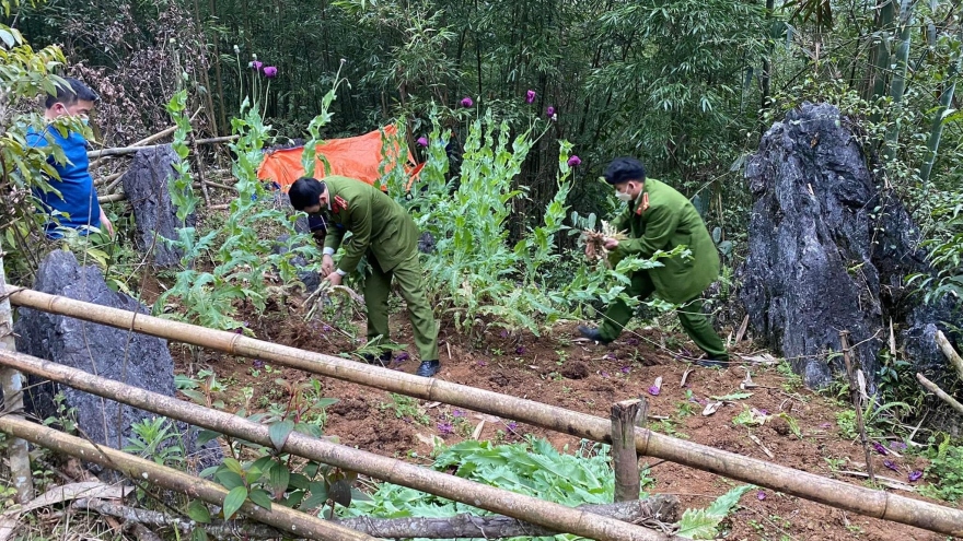 VOV.VN - Mấy ngày qua, lực lượng Công an tỉnh Cao Bằng liên tiếp phát hiện, tiêu hủy nhiều cây thuốc phiện do người dân trồng trái phép trên nương rẫy, vườn nhà.