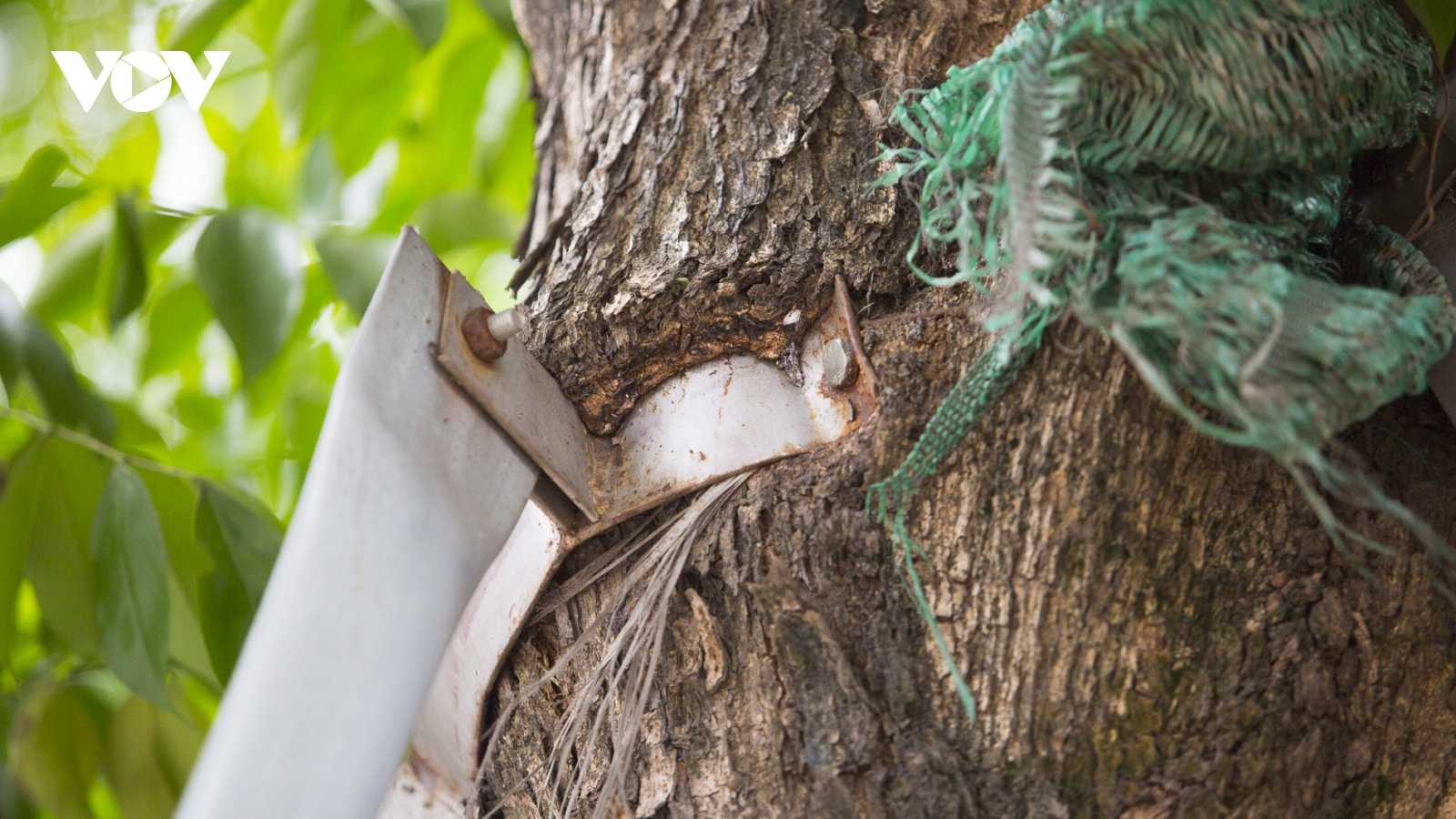 VOV.VN - Cây xanh ở hàng loạt tuyến đường tại thủ đô Hà Nội được chằng chống bởi hệ thống sắt thép kiên cố. Tuy nhiên, vì thiếu quan tâm hay sự vô trách nhiệm của đơn vị quản lý khiến nhiều cây như bị đeo gông cùm, khó có thể phát triển bình thường.