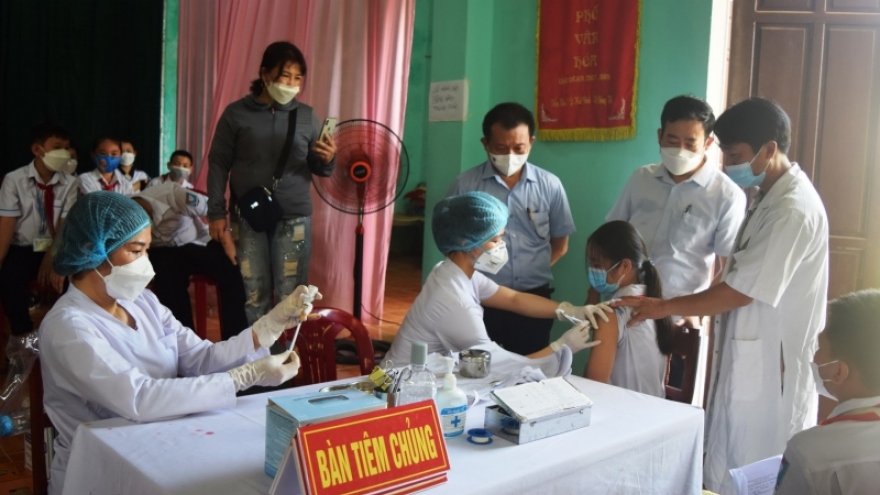 VOV.VN - Hôm nay (27/4), tỉnh Quảng Bình triển khai tiêm chủng vaccine phòng Covid-19 cho trẻ từ 5 đến dưới 12 tuổi. Trong ngày đầu tiên triển khai, ngành y tế tỉnh đã tiêm 1.200 mũi vaccine phòng Covid-19 cho trẻ trong độ tuổi.