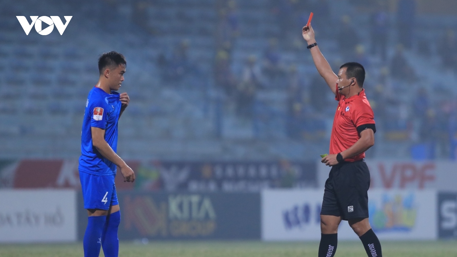 VOV.VN - Trung vệ Nguyễn Tăng Tiến của Quảng Nam nhận án phạt 20 triệu đồng và cấm thi đấu 4 trận vì pha bóng triệt hạ Phạm Tuấn Hải trong trận gặp Hà Nội FC.