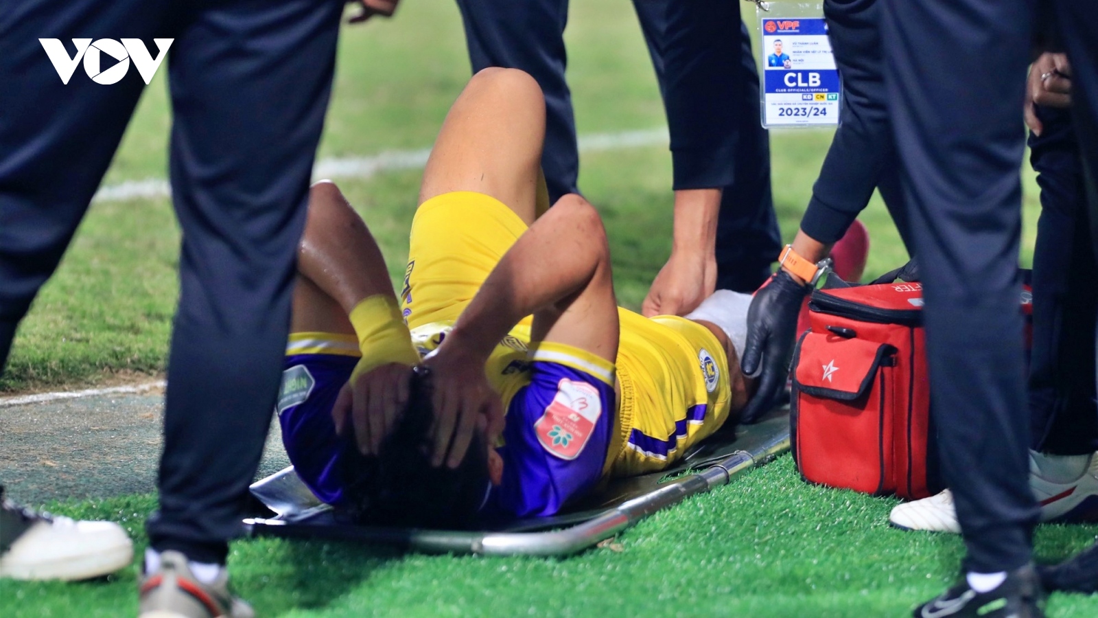 VOV.VN - Sau trận đấu Hà Nội FC thắng 3-1 Quảng Nam tại vòng 13 V-League 2023/2024 trên sân vận động Hàng Đẫy, Tuấn Hải lập tức vào viện cấp cứu sau pha vào bóng triệt hạ của cựu cầu thủ HAGL - Tăng Tiến.
