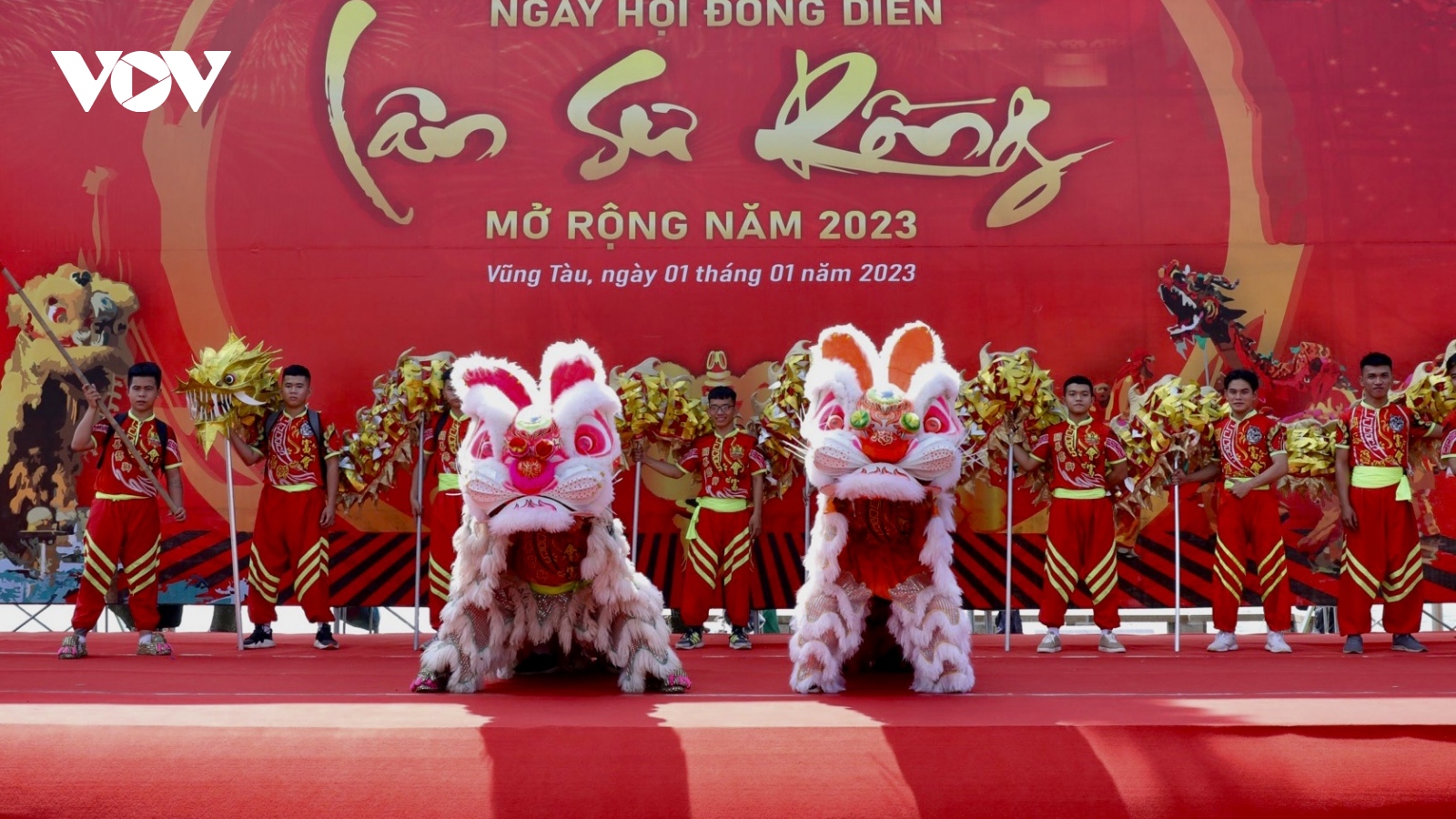 VOV.VN - Chiều 1/1, 54 đoàn lân – sư – rồng (tượng trưng 54 dân tộc Việt Nam) xác lập kỷ lục Việt Nam “Vũ điệu rồng bay”. Đây là chuỗi hoạt động chào đón năm mới 2023 của Bà Rịa – Vũng Tàu.
