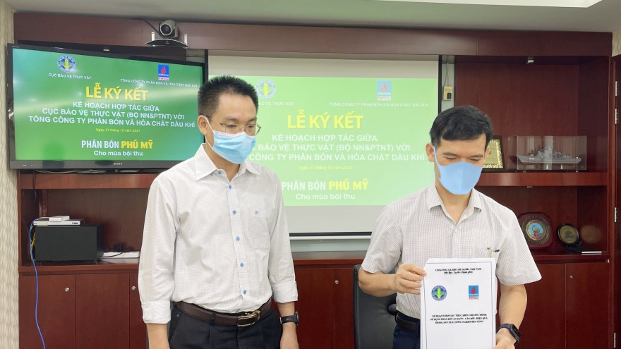 VOV.VN - Tổng công ty Phân bón và Hóa chất Dầu khí (PVFCCo, nhà sản xuất và kinh doanh phân bón Phú Mỹ) vinh dự là 1 trong 15 doanh nghiệp đầu ngành được Cục Bảo vệ thực vật (Bộ NNPTNT) chọn lựa, ký kết Kế hoạch hợp tác thực hiện chương trình sử dụng phân bón, thuốc bảo vệ thực vật an toàn.