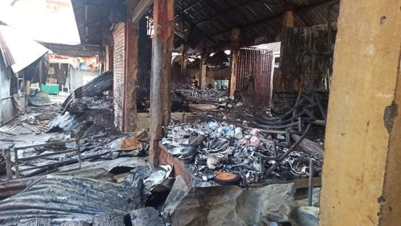 VOV.VN - Sáng 18/7, đơn vị đang phối hợp với lực lượng chức năng tiến hành khám nghiệm hiện trường, thống kê thiệt hại, cũng như điều tra nguyên nhân vụ cháy tại chợ thị xã Buôn Hồ vào đêm 17/7, khiến 28 ki ốt bị thiêu rụi.