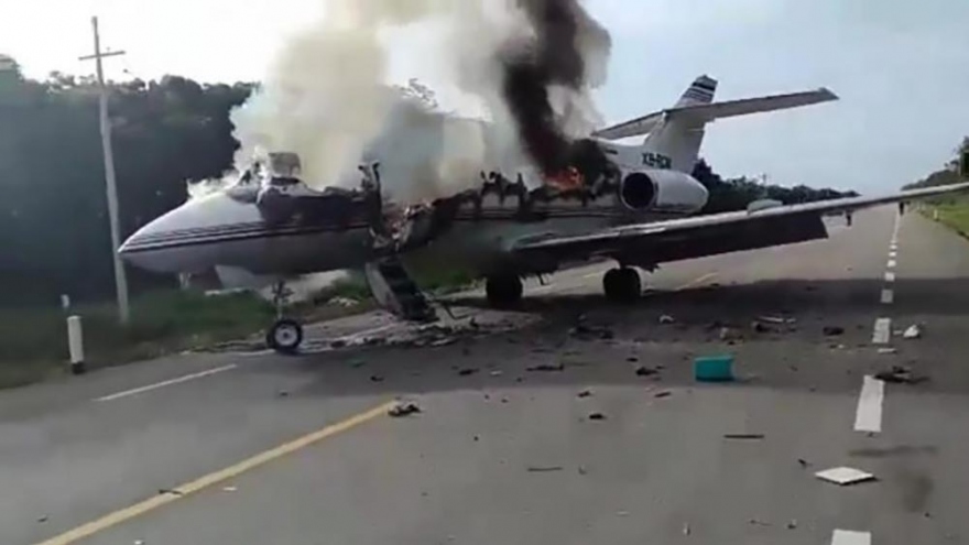Máy bay ném bom chiến lược B-1 của Mỹ bốc cháy ngùn ngụt trên đường băng