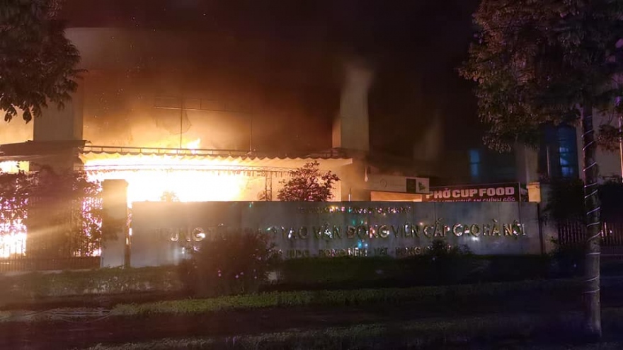 VOV.VN - Một nhà hàng kết hợp quán cà phê trong khuôn viên Trung tâm huấn luyện vận động viên cấp cao tại Khu Liên hợp thể thao Quốc gia Mỹ Đình xảy ra cháy lớn ngay trước thời khắc Giao thừa.