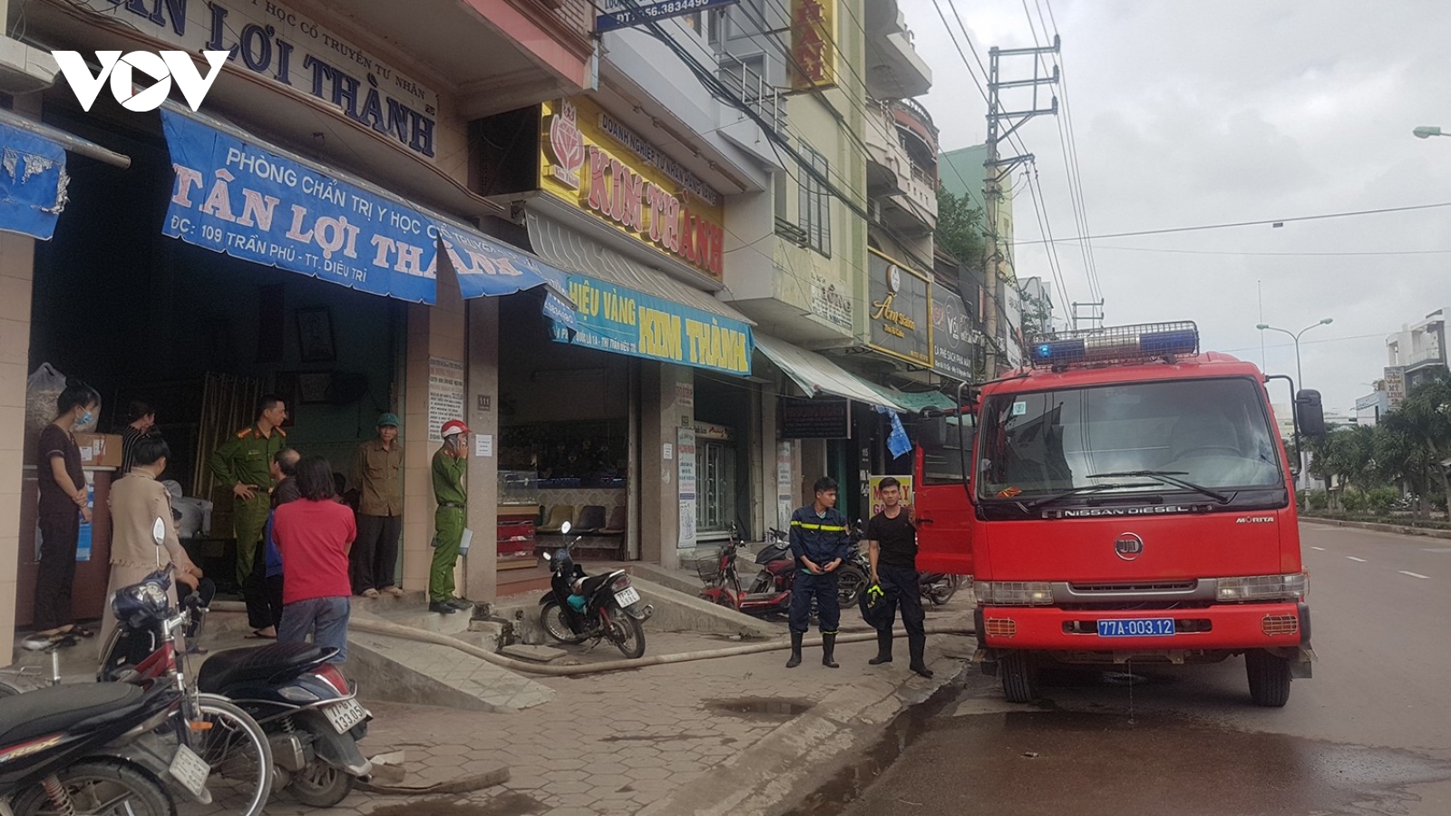 VOV.VN - Lúc 11 giờ trưa 8/1, tại huyện Tuy Phước, tỉnh Bình Định xảy ra vụ cháy ở cửa hàng bán thuốc bắc. Đám cháy không gây thiệt hại về người nhưng thiêu rụi nhiều tài sản.