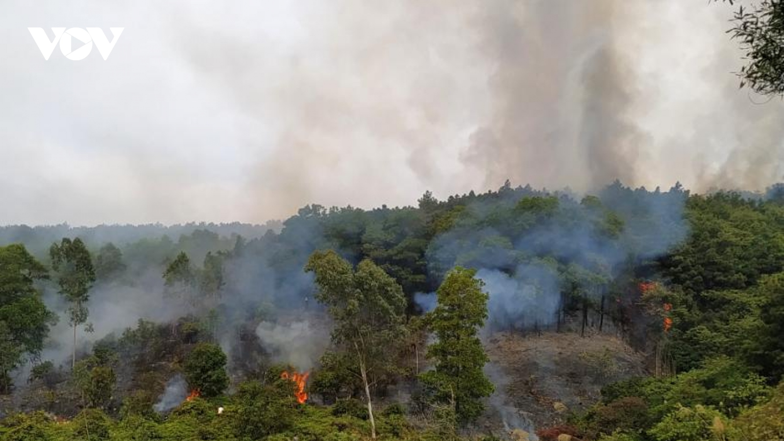 VOV.VN - Vụ cháy rừng tại thành phố Hạ Long, tỉnh Quảng Ninh đã bước sang ngày thứ 2. Hàng trăm người được huy động, thức xuyên đêm để xử lý vụ cháy rừng.