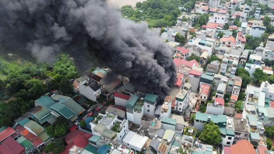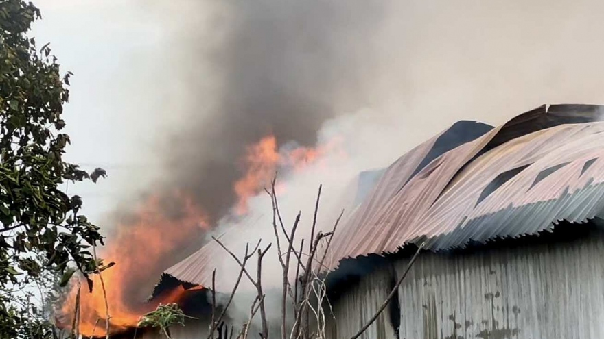 VOV.VN - Ngọn lửa lớn bùng lên do chập điện đã thiêu rụi gần như hoàn toàn tài sản bên trong xưởng sản xuất mây tre đan rộng hơn 500m2 ở xã Thủy Xuân Tiên (huyện Chương Mỹ, Hà Nội).