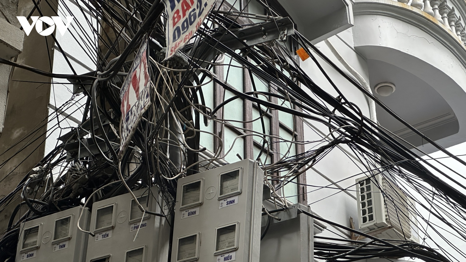 VOV.VN - Trên địa bàn các quận nội thành Hà Nội, nhất là các ngõ ngách tồn tại những bó dây cáp điện, cáp viễn thông treo lơ lửng được ví như "rác trời" trên đầu người qua lại tiềm ẩn gây nguy hiểm và cháy nổ.