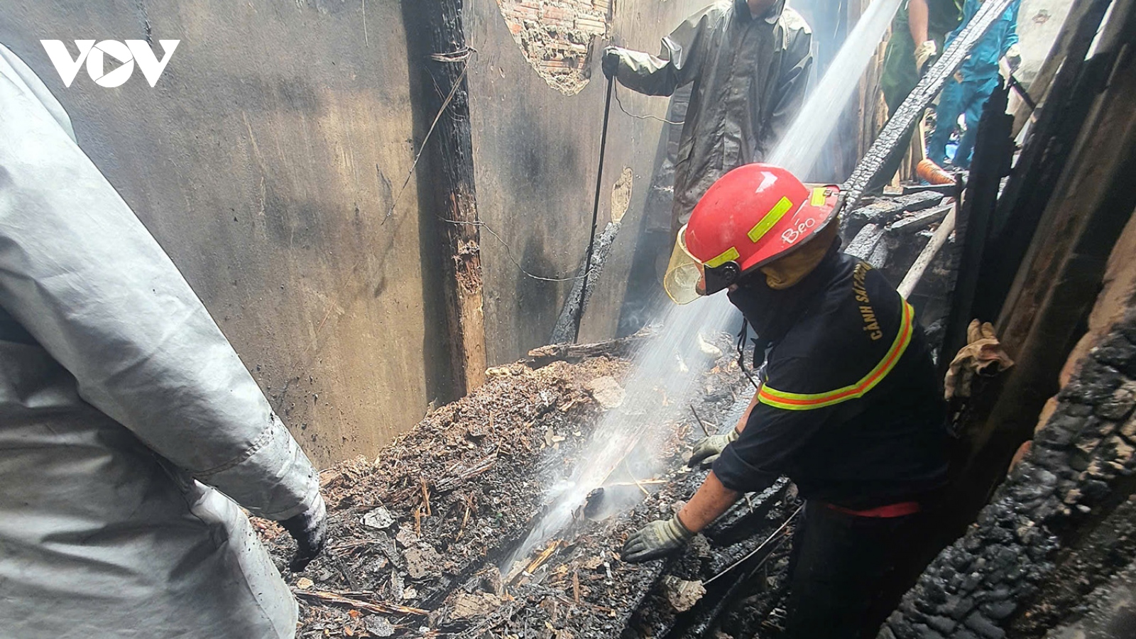 VOV.VN - Một ngôi nhà trong ngõ phố Bắc Cầu (phường Ngọc Thụy, quận Long Biên, TP Hà Nội) sử dụng làm kho chứa vải bất ngờ bốc cháy khiến 1 người bị thương, nhiều tài sản bị thiêu rụi.