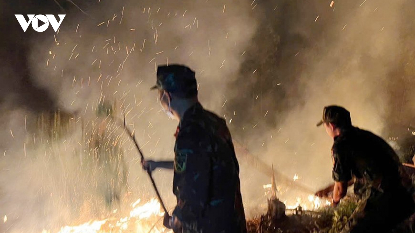 VOV.VN - Huyện Thuỷ Nguyên (TP Hải Phòng) đã huy động hơn 100 người gồm các lực lượng công an, quân đội, dân quân tự vệ và người dân địa phương dập lửa, khống chế đám cháy rừng tại khu vực núi Đá Vách (thuộc địa bàn xã Kỳ Sơn).